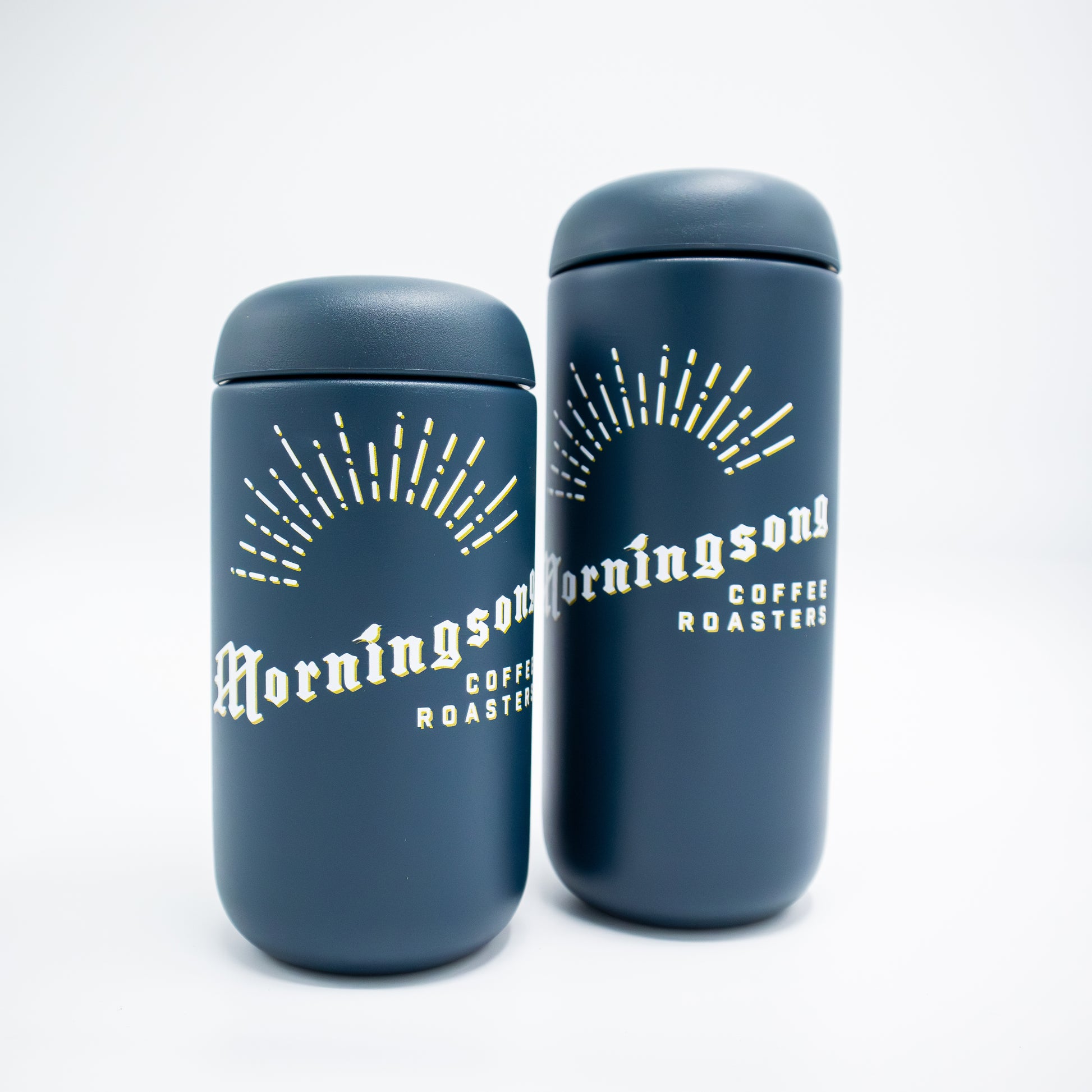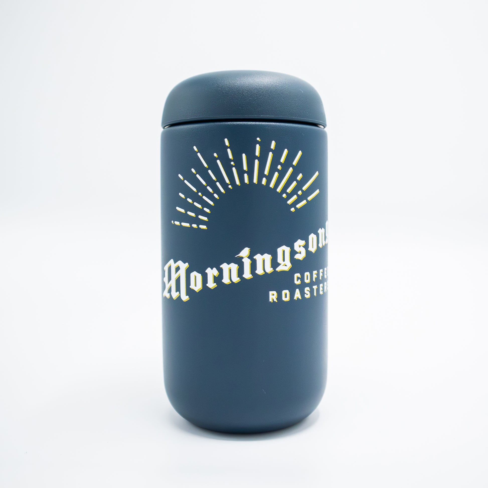 This custom-printed Fellow Carter Move mug features a double-wall vacuum-insulated stainless steel construction that keeps drinks hot for 12 hours and cold for 24 hours. An interior ceramic coating keeps your coffee free from unwanted odors and metallic taste and a thin tapered lip makes for an enjoyable pouring and drinking experience. Take a cup of your favorite Morningsong coffee anywhere knowing it will taste as great throughout your day as it did when you brewed it.